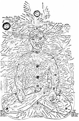 Historische Yogaschriften geben zwischen 72 000 (Hatha Yoga Pradipika) und 350 000 (Shiva Samhita) Nadis (Meridiane, "Energiekanäle") an - siehe hierzu auch die Abbildung.