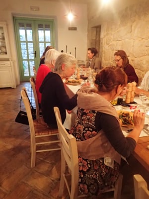 Nach der morgendlichen Yoga-Einheit gab es ein ausgedehntes Frühstück, wahlweise mit gekochtem Ei, Spiegelei oder Rührei. Danach machten die Teilnehmerinnen verschiedene individuelle Ausflüge in die Umgebung und ans Meer. Gordon war beim Ausarbeiten der Routen gerne behilflich. Vor dem Abendessen folgte die zweite Yoga-Einheit. Die Küche gestaltete die Speisen des abendlichen 3-Gänge-Menüs sehr dekorativ, so dass diese des öfteren fotografiert wurden. Auch auf Essens-Sonderwünsche wurde eingegangen.